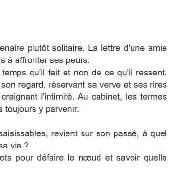 Ne chercher pas de contexte, d'explications, on entre directement dans un moment bien précis de la vie de quelqu'un. Et en quelques lignes, on comprend ce qui se joue...